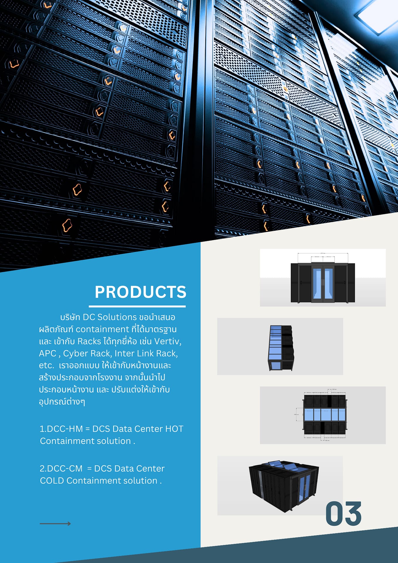 DC Solutions Co., Ltd. has been registered in Thailand since 2010. We are part of I-DCS, a company that is open in many countries in ASEAN, Malaysia, Indonesia, and the Philippines. We are a state of the art, total technology solution company whose core competency remains in designing, consulting, implementing, and maintaining as well as supporting robust, reliable, highly secured, and highly scalable turnkey data center solutions with the lowest cost of ownership possible. DCS remains ahead of its competition by providing tomorrow’s technology today and breaking new ground in the advancement of “exact” data center products and services. DCS’s highly expert industryfocused teams are well equipped with deep knowledge , exalted expertise, and passionate commitment, as well as the core elements of delivering superior results and valuable solutions that are beyond expectation.